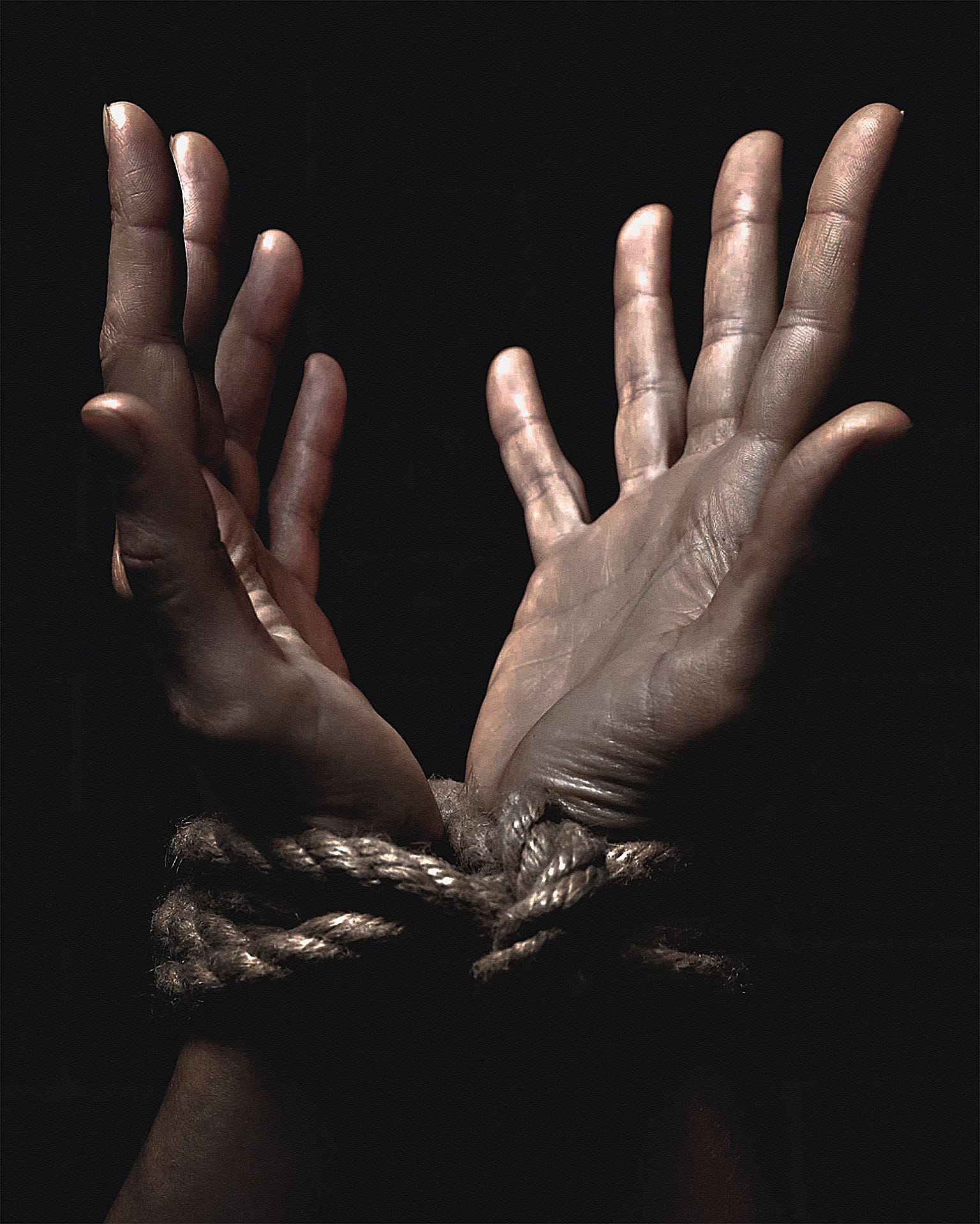 Arms stretched above my head, tied with the jute ropes. Strong and supple, but unyielding. I’m restrained and exposed, ready to be used.